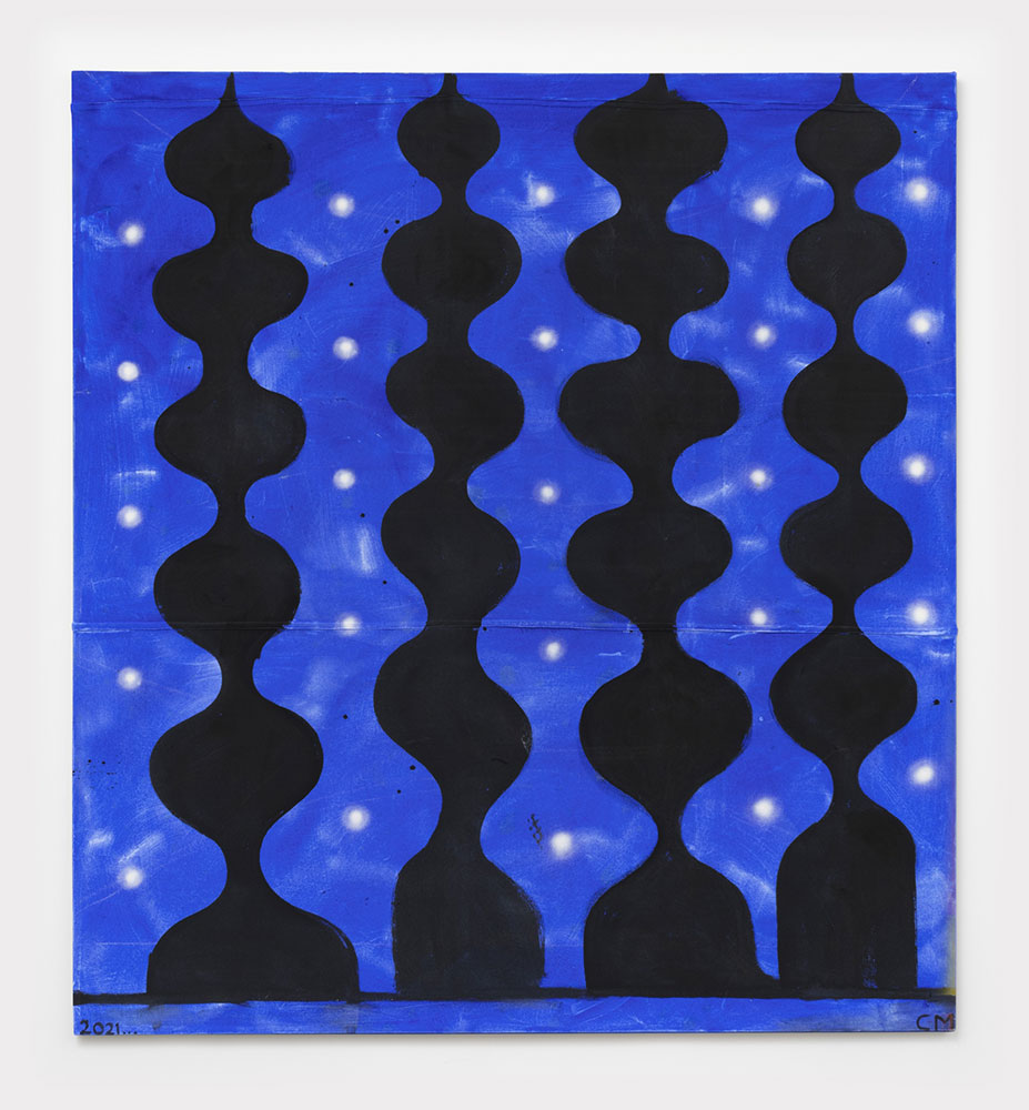Photo: Chris Martin, Midnight, 2021, acrylic and spray paint on canvas, 87 x 75 x 3 inches (221 x 190.5 x 7.6 cm), © Chris Martin, Courtesy the artist and David Kordansky Gallery