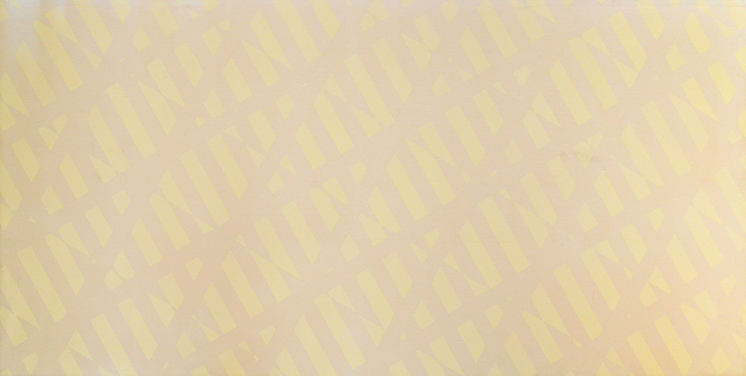 Photo: Rosemarie Castoro, White Yellow Raw Interference, 1966, Acrylic and Prismacolor pencils on canvas, 72 × 143 1/2 inches, © Rosemarie Castoro Estate, Courtesy Rosemarie Castoro Estate & Judd Foundation