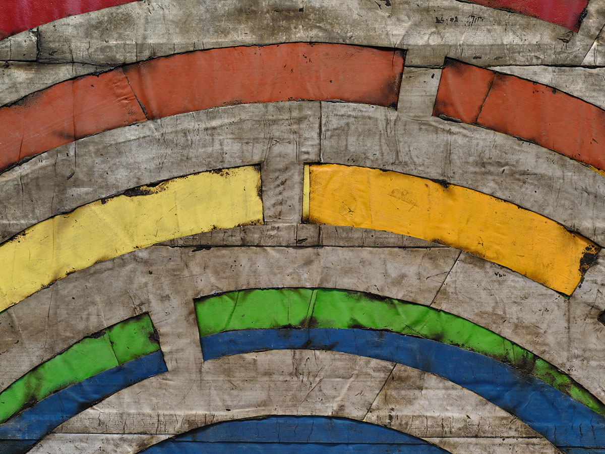 Photo: Theaster Gates, Untitled, 2024 (detail), Industrial oil-based enamel, rubber torch down, bitumen, and steel, 144 7/8 x 389 inches (368 x 988 cm), © Theaster Gates, Photo: Thomas Lannes, Courtesy Gagosian